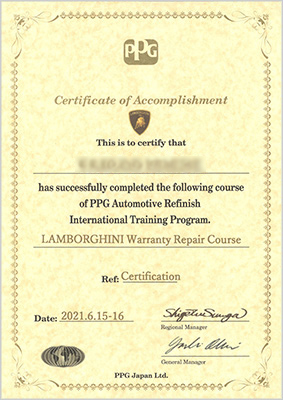 そのため青山鈑金塗装では、修理技術者が、完全で安全かつ高品質な修理を行うため、I-CAR溶接トレーニング認定を取得しております。